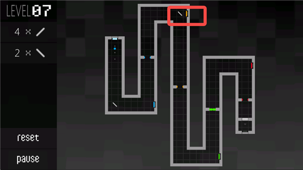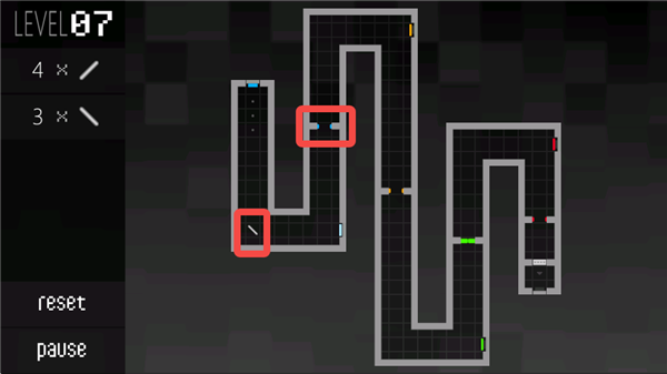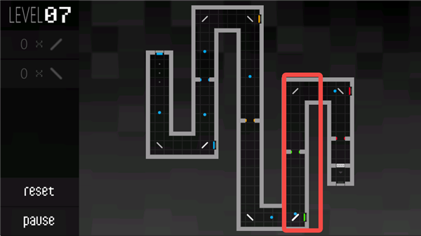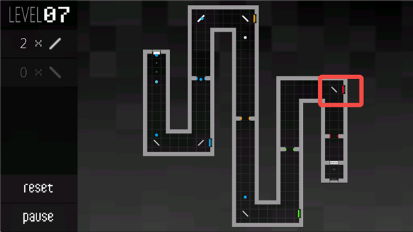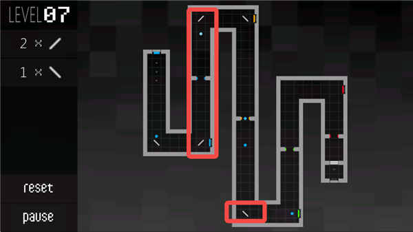 游戏以黑白方块组成的矩阵为舞台 ,引导能量子弹沿直线或折射路径穿越关卡